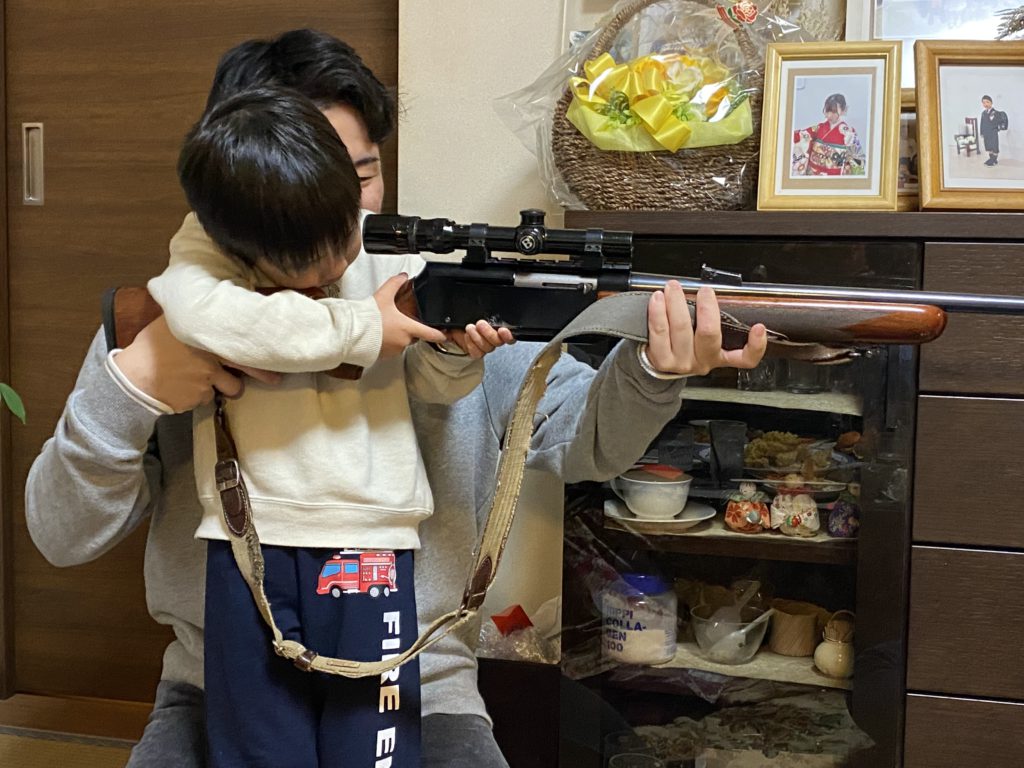 子供たちも珍しがり猟銃を