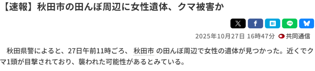 秋田県で人身被害が多発