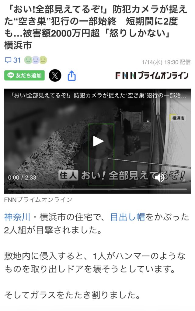 そういう凶悪な空き巣が
